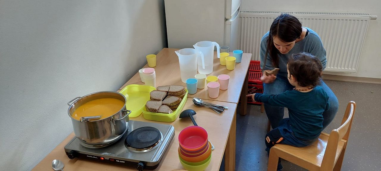 Nach all der konzentrierten Arbeit gab es natürlich auch eine kleine Stärkung: eine köstliche, selbstgemachte Kürbissuppe! Der Kürbis wurde uns freundlicherweise von Reinhard Aichholzer gespendet – und Brigitte hat daraus mit viel Liebe eine wärmende Suppe gezaubert, die allen wunderbar geschmeckt hat. 🧡