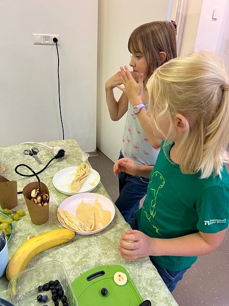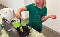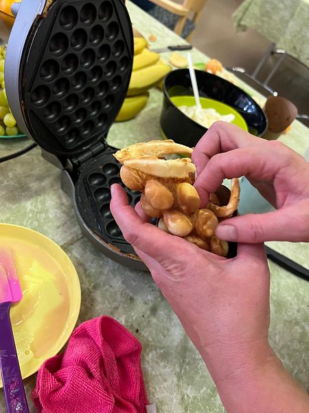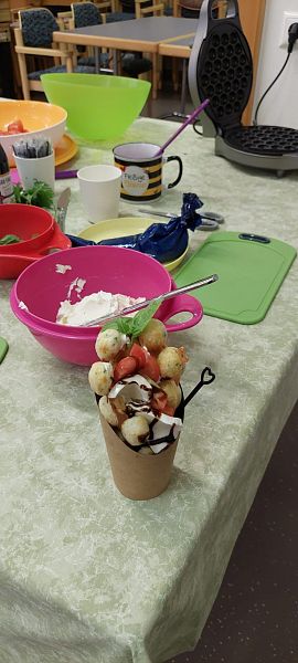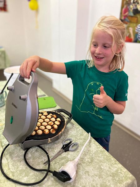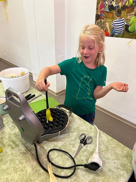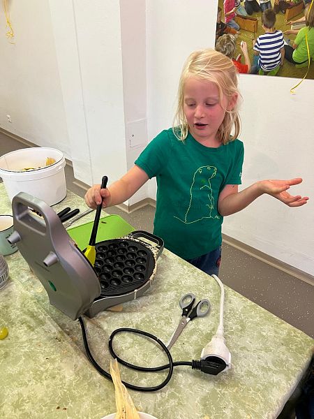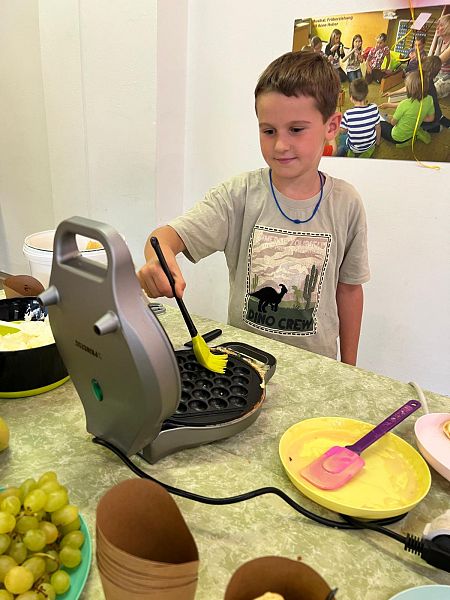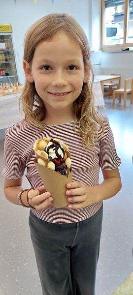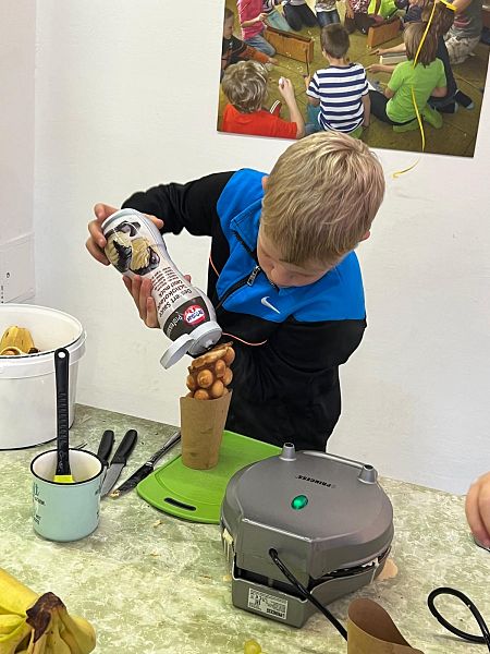 Schon beim Ankommen lag ein verführerischer Duft in der Luft: Die Kinder, unterstützt von den Großen, zauberten Bubble-Waffeln in allen erdenklichen Variationen. Mit Schokolade, Früchten und bunten Streuseln für die Naschkatzen, oder pikant mit Käse und Gemüse für die Herzhaften – die Waffeln waren so bunt und vielseitig wie unsere Kinder selbst.
