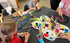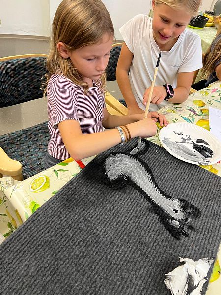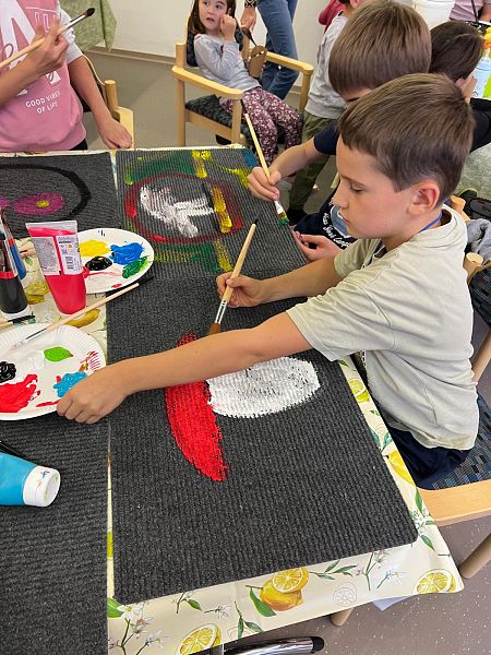 Neben dem Schlemmen durfte natürlich auch das Kreative nicht fehlen: Mit viel Eifer und leuchtenden Augen bemalten die kleinen und großen Künstlerinnen und Künstler ihre eigenen Fußmatten mit Acrylfarben. Entstanden sind wahre Einzelstücke – lustig, farbenfroh und absolut einzigartig.